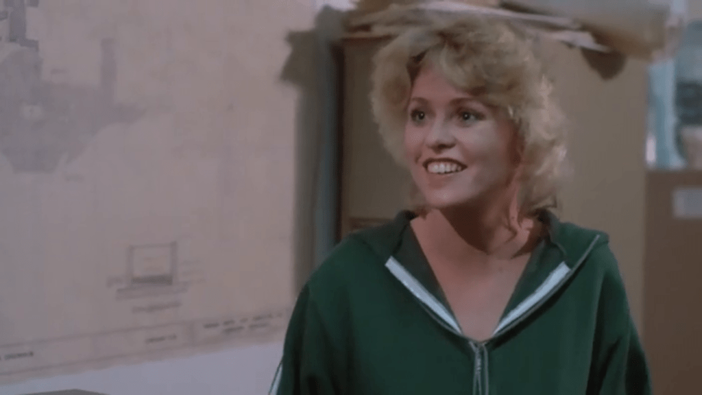 Tewes plays Jane Harris, an earnest Miami news anchor who begins to obsess over the latest reports of a local rapist/murderer (played with a notably high ‘ick factor’ by John DiSanti). She’s made even more sensitive to the carnage from years of caring for her younger blind/deaf/mute sister, Tracy, ably brought to life by Jennifer Jason Leigh, who of course went on to jump-start her career the following year in FAST TIMES AT RIDGEMONT HIGH. When Jane begins to suspect a neighbor of the city’s latest spate of ghastly violence, she ups the ante, harassing him in turn as the would-be prey becomes the hunter. All this culminates in a shocking face-off as the burly, menacing killer zeroes in on Tracy, who is helpless to defend herself.