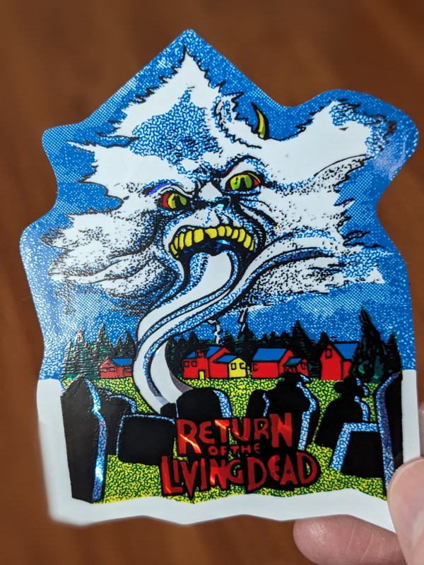 Time to dig down deep into the memorabilia for another prism sticker. This snazzy one features the artwork from RETURN OF THE LIVING DEAD PART II.