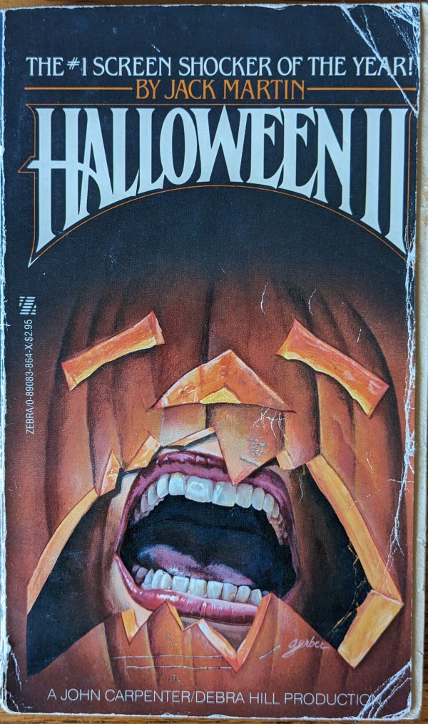 Dennis Etchison is a fine horror and fantasy writer in and of himself, but strangely enough he’s possibly best remembered for the film novelizations he wrote under the pseudonym of “Jack Martin” back in the early 1980s. The core of these releases were adaptations of the first three HALLOWEEN films, and I was lucky enough to find this copy of “Halloween II” in a second-hand shop back around 1986.