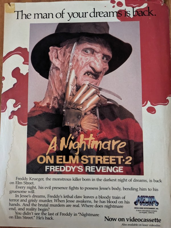 This is a full-page Media Home Entertainment advert I saved from that memorable summer trumpeting Freddy’s home video return.