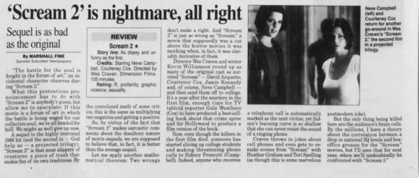 Hey, I’ll be the first to admit that Kevin Williamson wore out his welcome really fast in the horror genre, but I always thought that Wes Craven’s SCREAM 2 was a solid sequel to a film that, for better or worse, totally changed the face of horror cinema.